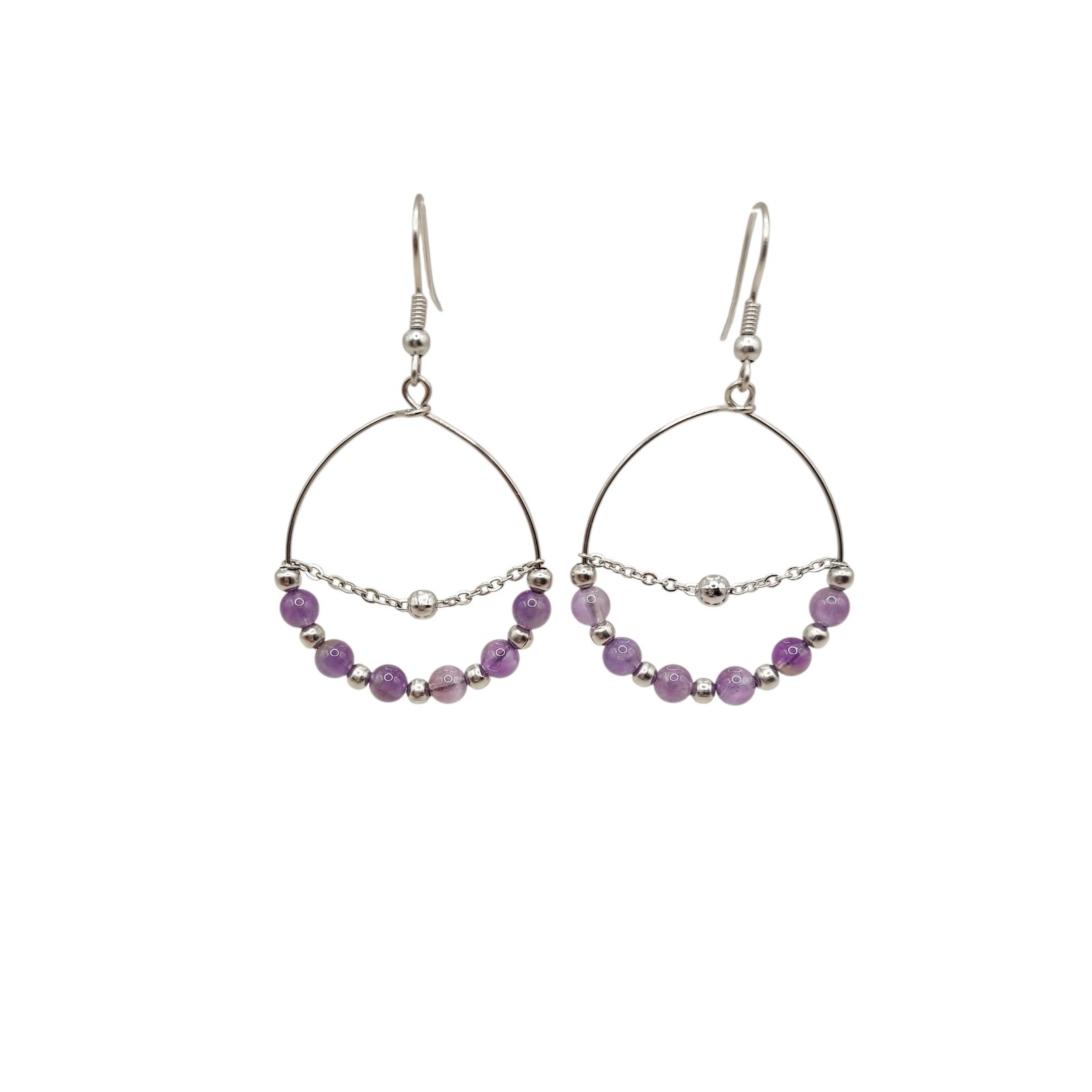 Sublimées par l’acier inoxydable,  les boucles d’oreilles Améthélya allient l’élégance intemporelle de l’inox, à l’élégance envoûtante des pierres naturelles, pour celles et ceux qui recherchent à la fois un bijou chic et énergétique