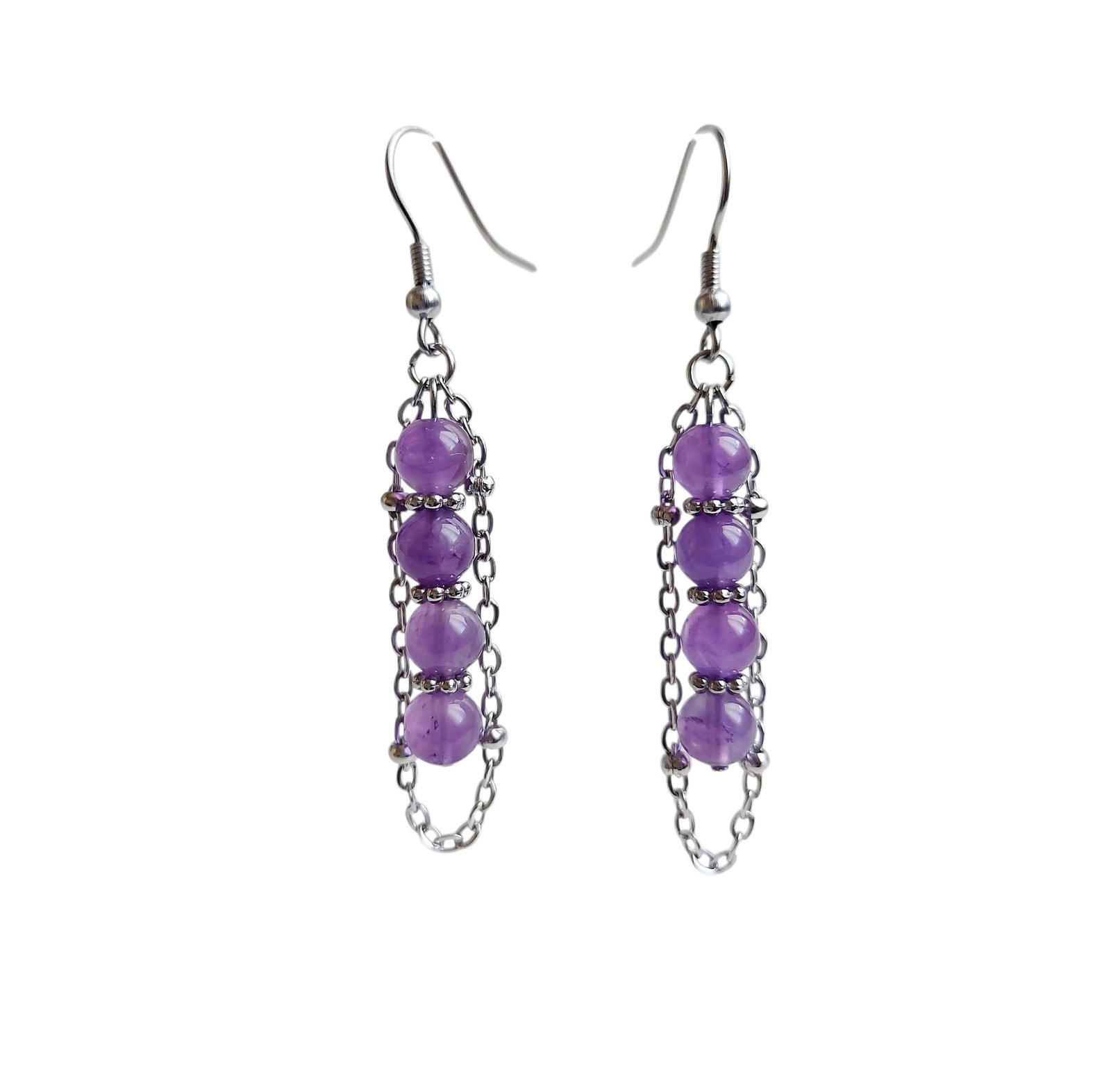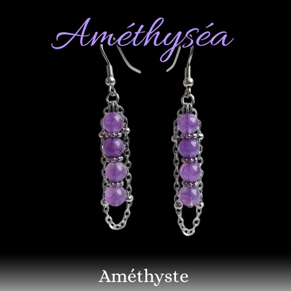 Composées d’améthyste, les boucles d’oreilles Améthyséa vous accompagnent sur le chemin de la sagesse, pour retrouver la paix intérieure et la clarté d’esprit. Ses reflets violets, doux mais puissants, vibrent avec le chakra couronne, facilitant la méditation et l’éveil spirituel.