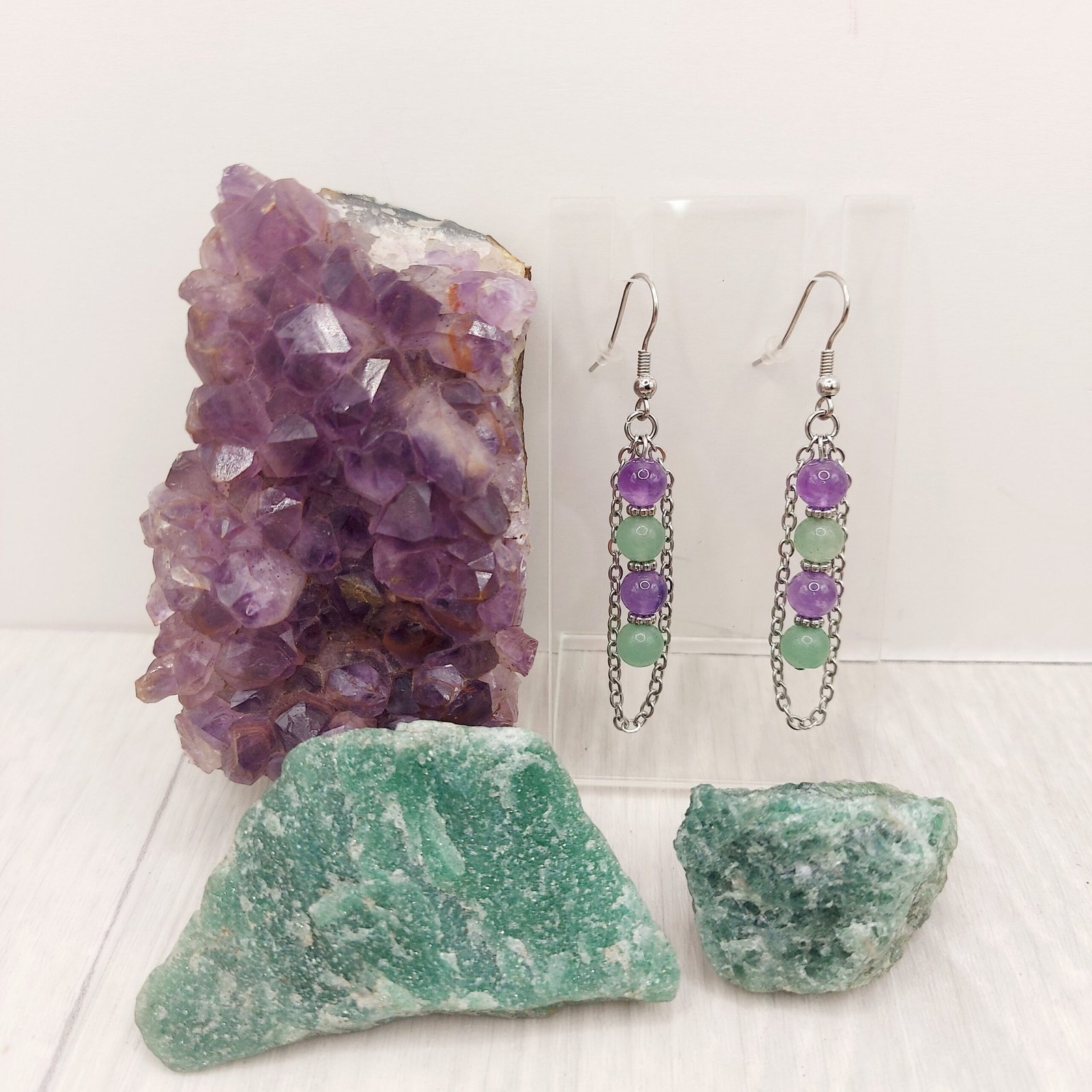 Composé de pierres d’aventurine et d’améthyste, ce bijou vous accompagne dans la plus belle des aventures : celle de votre propre chemin. Odysséa, c’est une invitation à écouter l’appel intérieur, à suivre ses élans, sans peur ni précipitation. L’aventurine pierre du cœur passionné et des projets qui prennent vie, ouvre le cœur, insuffle la passion et donne le courage d’oser ses rêves. L’améthyste, pierre de sagesse et d’inspiration, guide avec clarté, calme et intuition. Ensemble, elles tracent un chemin d’équilibre entre élan et réflexion, pour que chaque rêve devienne réalité.