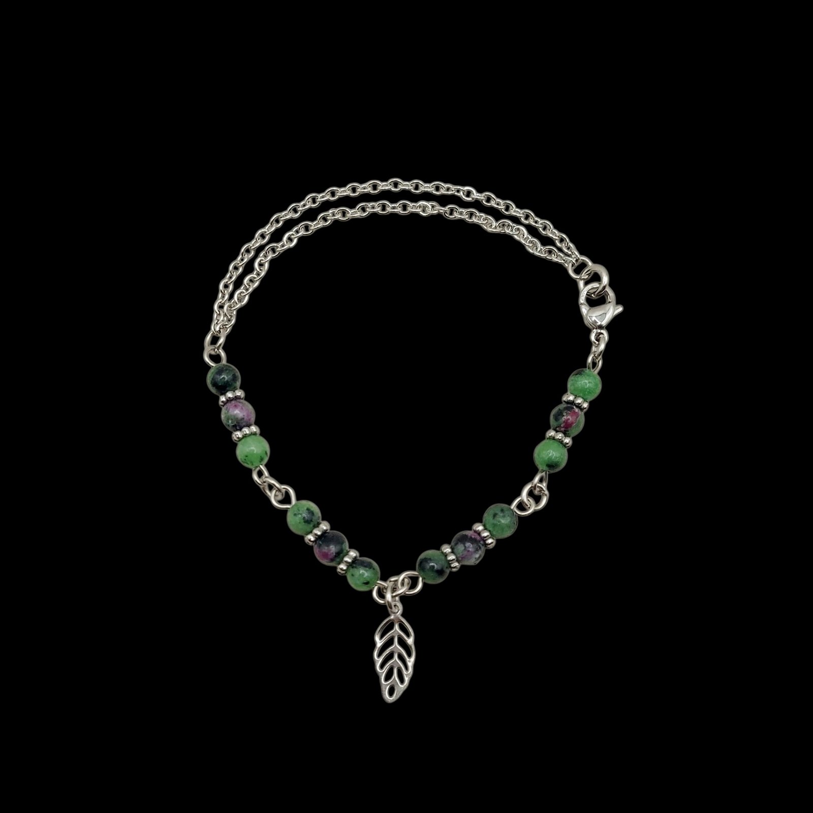 Composé de rubis sur zoïsite, pierre de protection et d’équilibre, le bracelet Zéolia vous accompagne sur le chemin de la réussite et de l’épanouissement. Tel un talisman qui attire la chance, il vous invite à avancer sans crainte et vous procure la détermination pour aller au bout de vos projets.