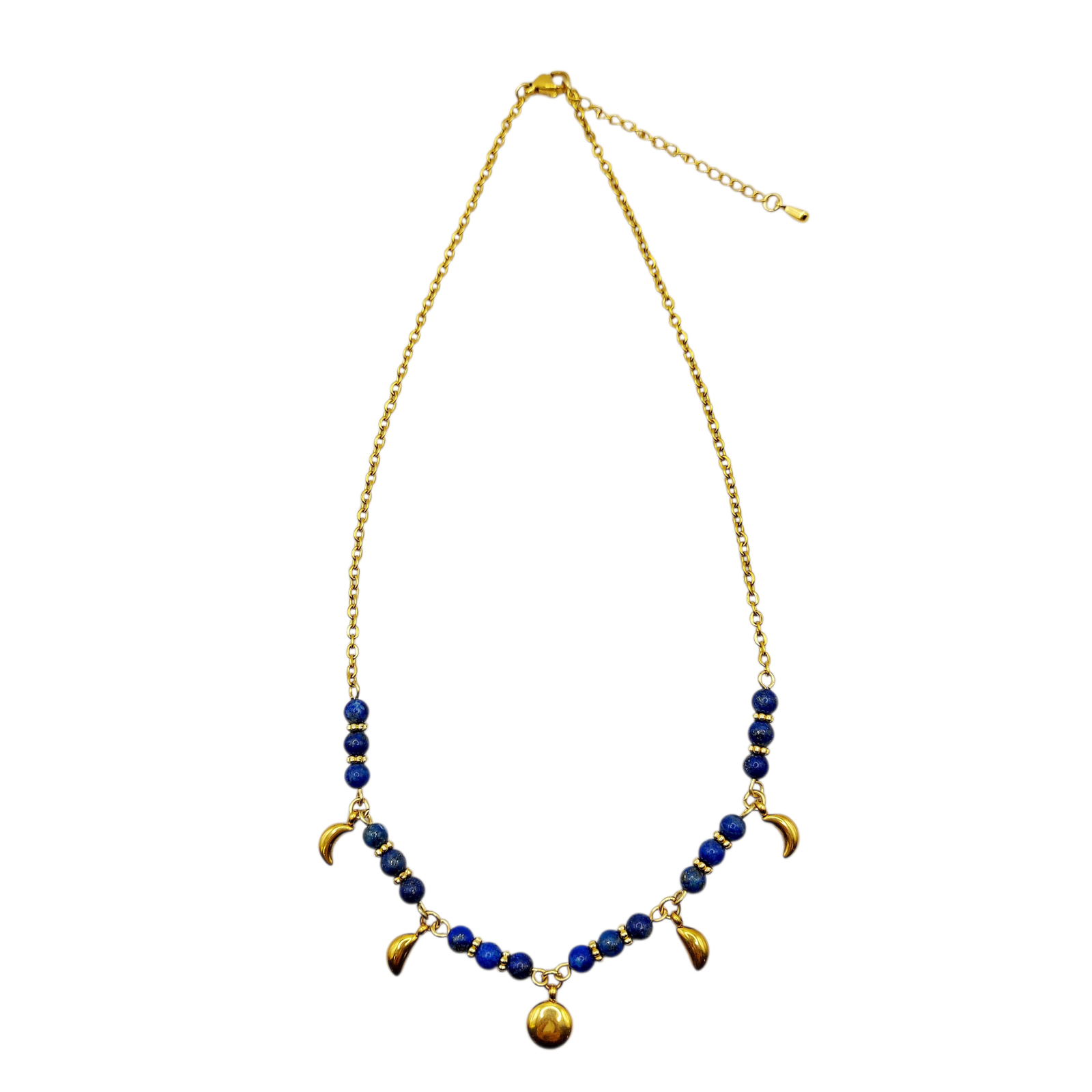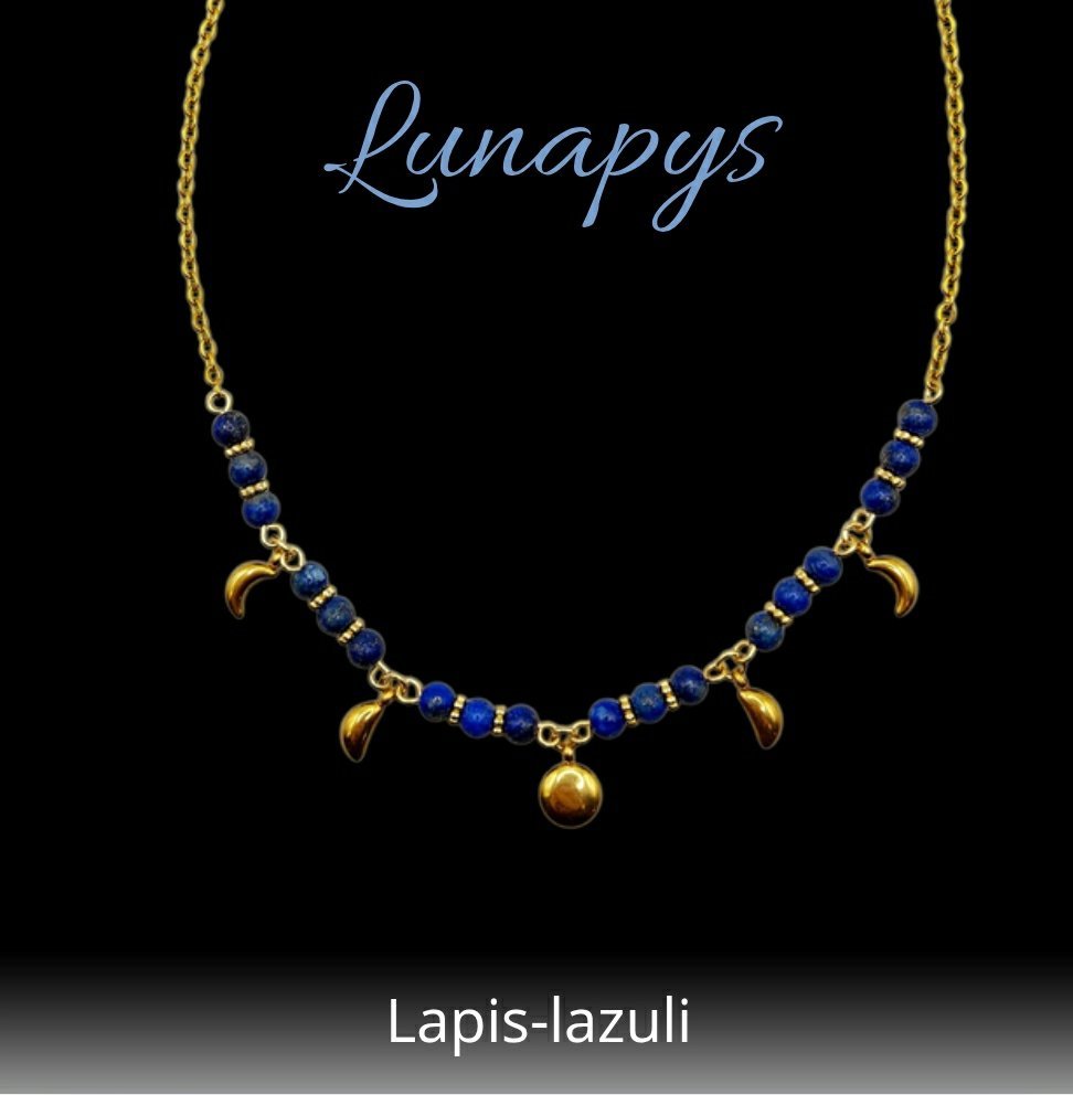 Inspiré par les rythmes sacrés de la lune, le collier Lunapys incarne les cycles de transformation, d’intuition et de renaissance. Les phases lunaires, délicatement représentées, rappellent que chaque étape de la vie a sa raison d’être : croissance, introspection, lâcher-prise et renouveau.